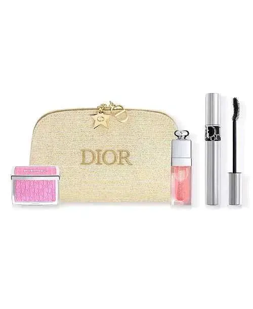 Una idea de regalo fantástica! Tres creaciones icónicas de maquillaje Dior para ojos, labios y tez se presentan en un neceser dorado de edición limitada.