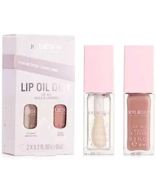 El set de aceites para labios Kylie Skin Lip Oil de edición limitada incluye dos aceites para labios de tamaño completo con la fórmula favorita de los fanáticos. Los sabores Coconut transparente y Crème Brûlée dejan una capa transparente de color nude. Con una textura rica y acondicionadora, este ac...