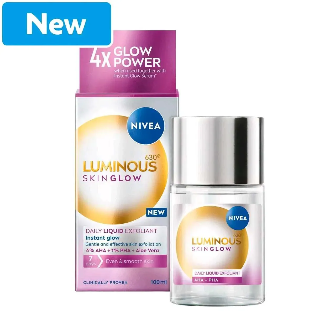 LUMINOUS630® SKIN GLOW Exfoliante Líquido actúa eficazmente sobre las múltiples dimensiones del glow: proporciona un tono uniforme, refina los poros al instante y exfolia la piel de forma suave gracias a sus principios activos 4% AHA y 1% PHA. Su fórmula única es ligera y se absorbe